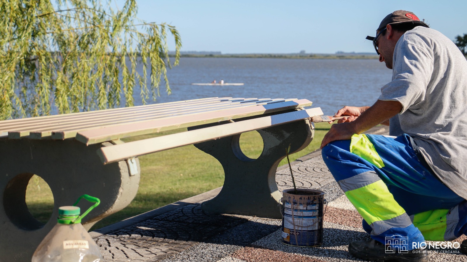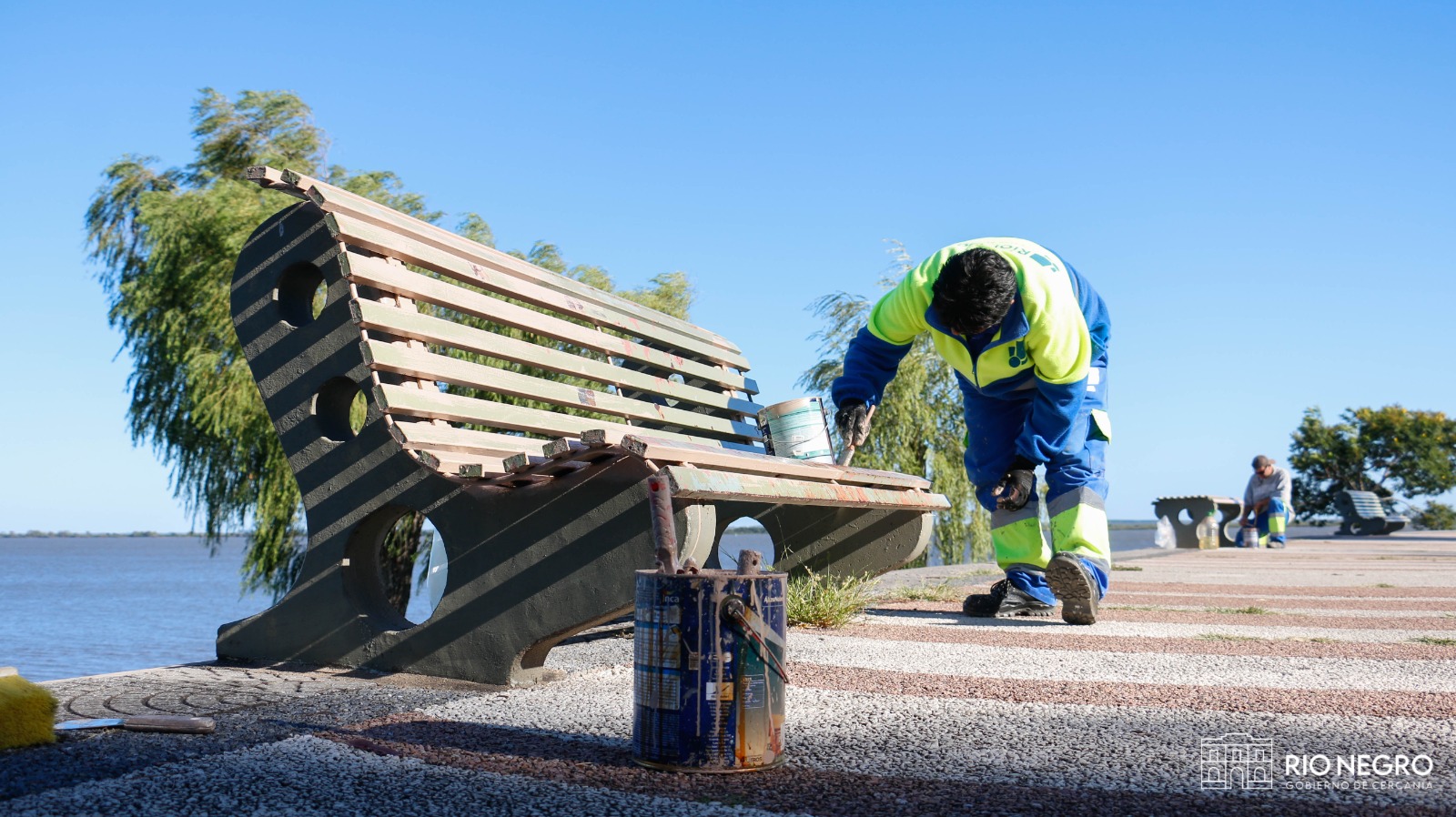 Los trabajos incluyeron limpieza general del área, corte de juncos, la puesta a punto de los parrilleros existentes y pintura de bancos sobre la rambla.