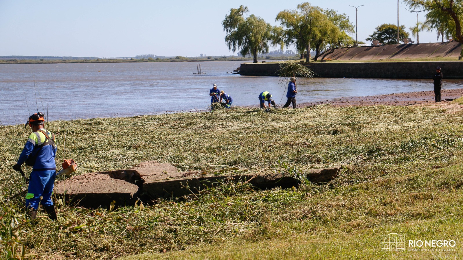 La Intendencia de Río Negro llevó adelante tareas de acondicionamiento en la rambla costanera, particularmente en la zona de la ensenada, en el marco de la preparación del sector para el próximo fin de semana, cuando se desarrollará la tradicional actividad de motonáuticas en Fray Bentos.