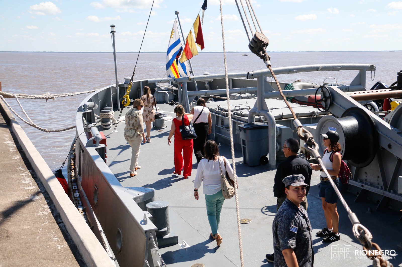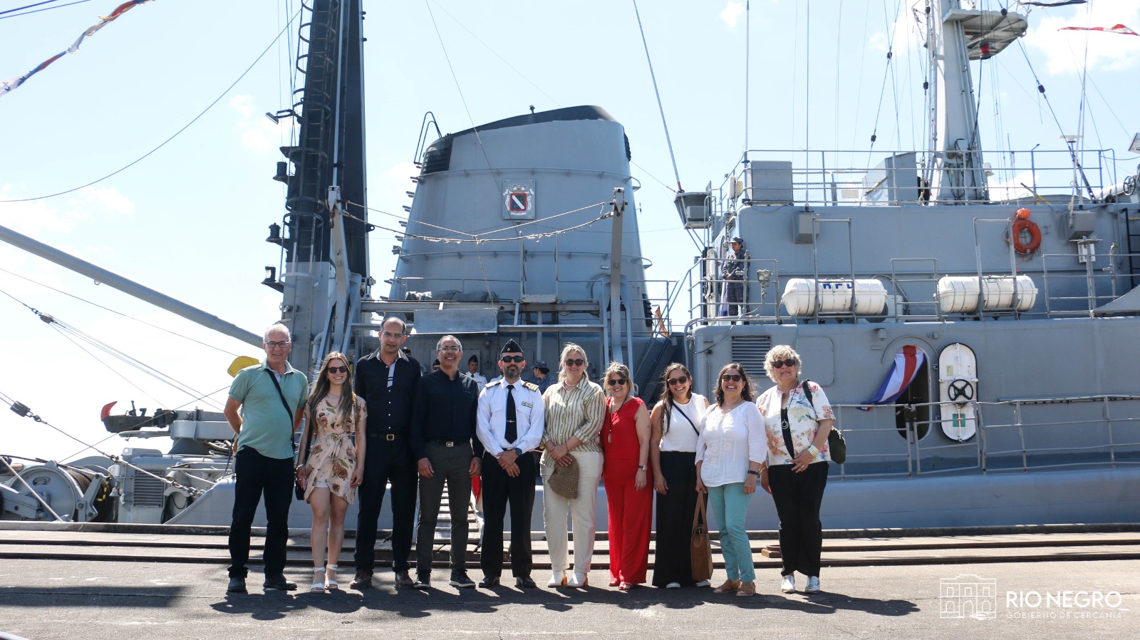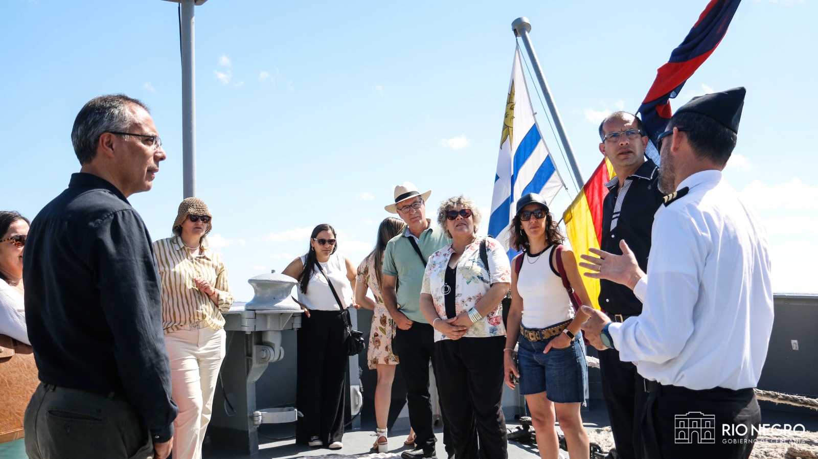El secretario general de la Intendencia, Walter Cardozo, encabezó la delegación departamental que recorrió la embarcación, acompañado por otras autoridades municipales, y fue recibido por el capitán y el segundo al mando del buque.
