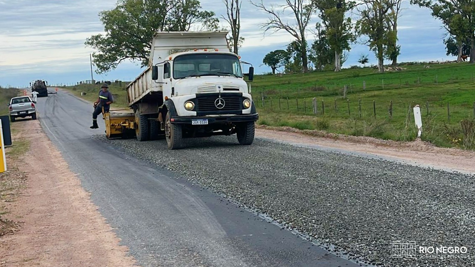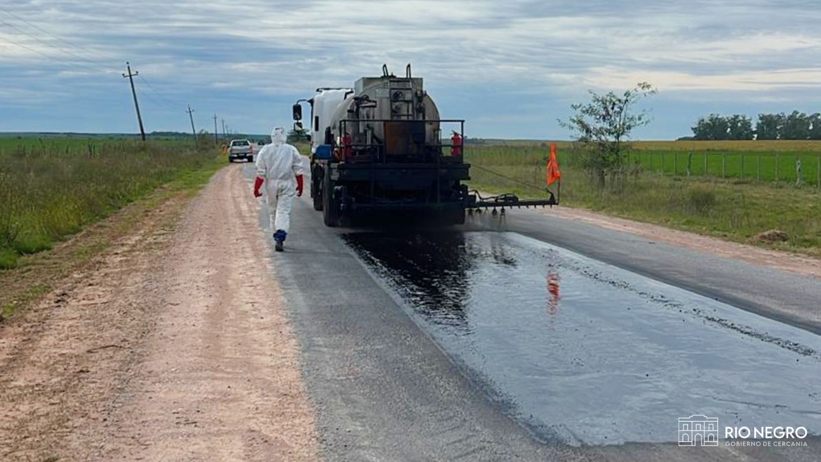 Las tareas comprenden la aplicación de un tratamiento bituminoso doble, iniciando con riego y colocación de piedra 620, seguido de la etapa de terminación mediante riego con emulsión RC2 y la incorporación de piedra 515, permitiendo consolidar la superficie intervenida.