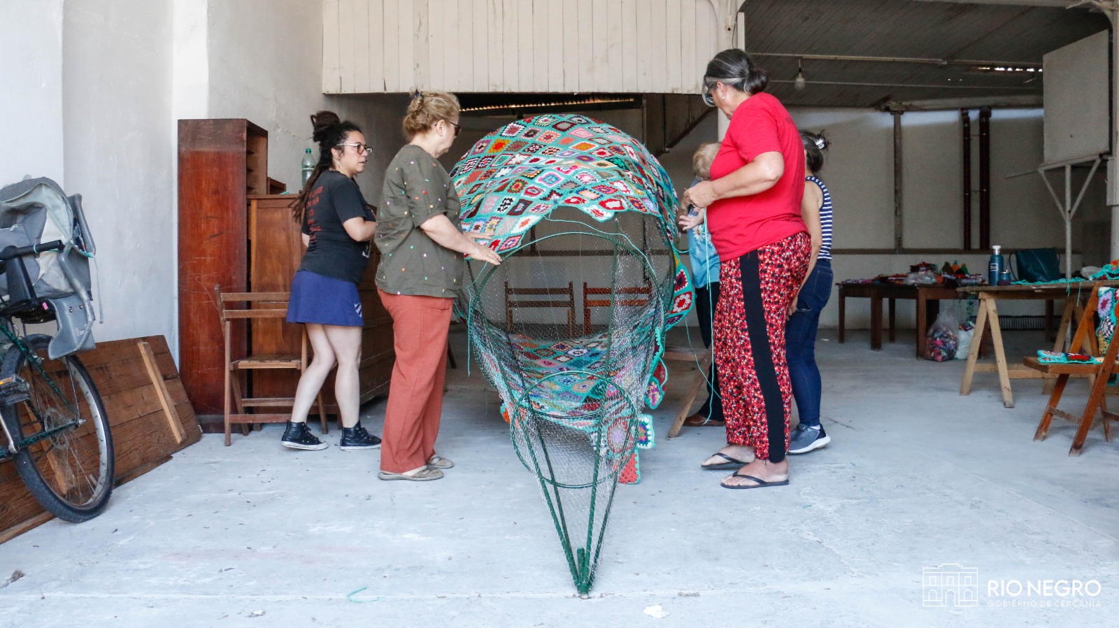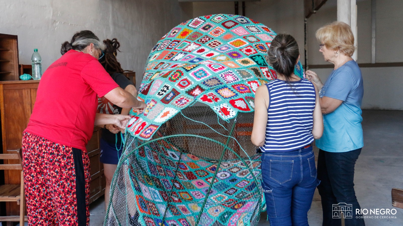 Uno de los grupos que se encuentra trabajando son las artesanas del Anglo que continúan trabajando en la preparación de su propio árbol, que será exhibido en los próximos días y sumará un aporte artístico destacado a esta iniciativa en Terminal de Ómnibus.