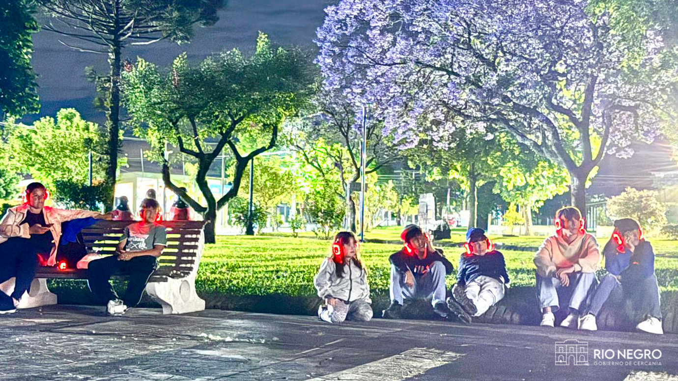 El pasado sábado 8 de noviembre, la Plaza Libertad de San Javier se transformó en una sala de cine al aire libre con la propuesta “Cine Silent”, una innovadora experiencia audiovisual que invita a disfrutar del cine con auriculares, combinando imagen y sonido en un formato inmersivo y respetuoso con el entorno.
