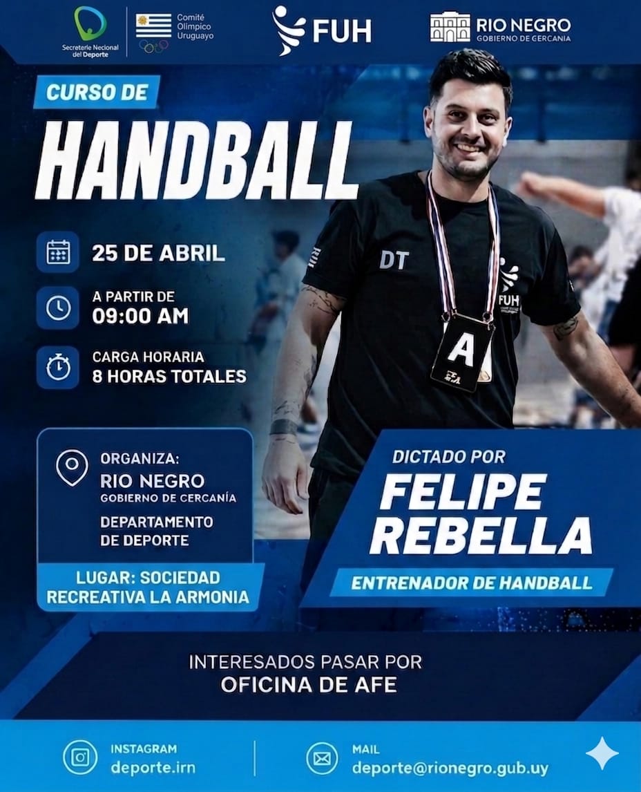Por más información, pueden comunicarse a través de: deporte@rionegro.gub.uy / Instagram: @deporte.irn