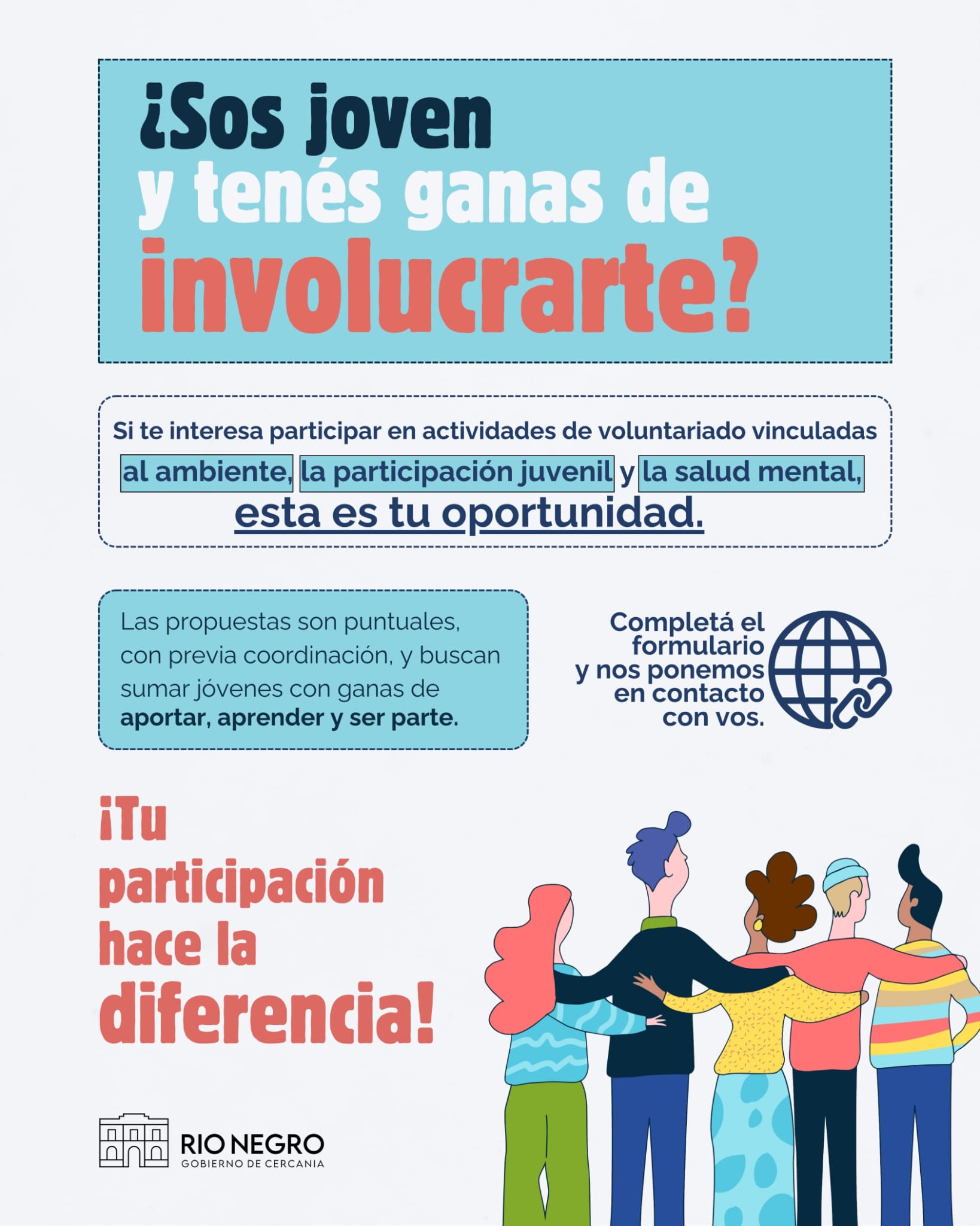 Se encuentra abierta una convocatoria dirigida a jóvenes interesados en participar en actividades de voluntariado vinculadas al ambiente, la participación juvenil y la salud mental.