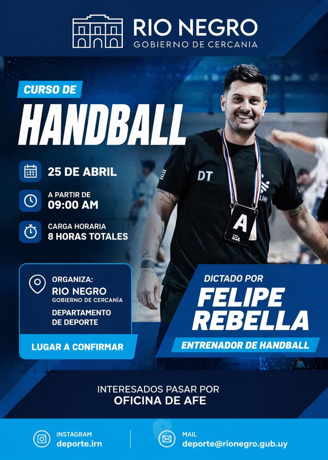 Por consultas, está disponible el Instagram oficial @deporte.irn y el correo electrónico deporte@rionegro.gub.uy