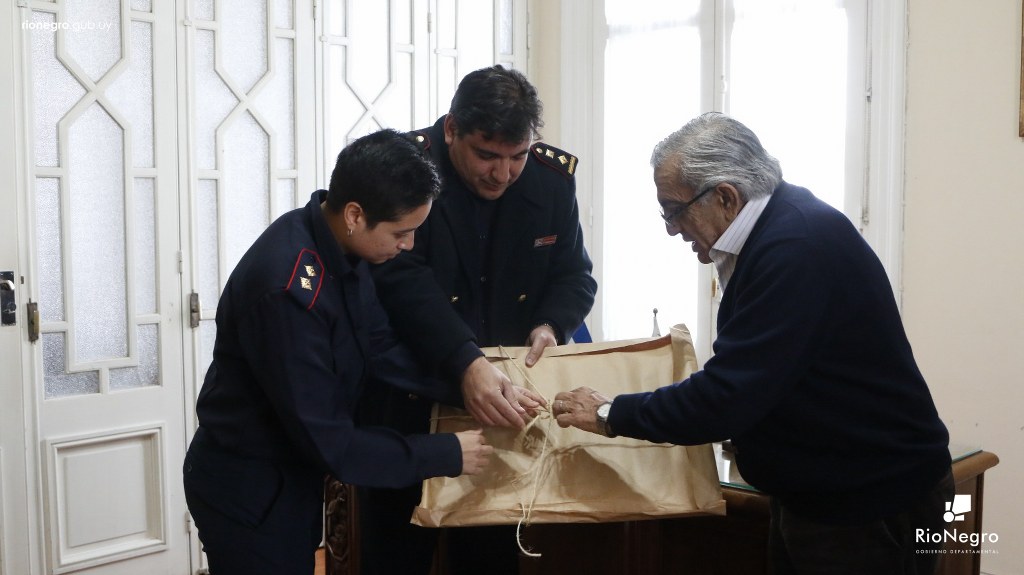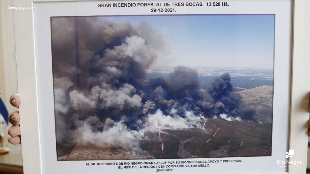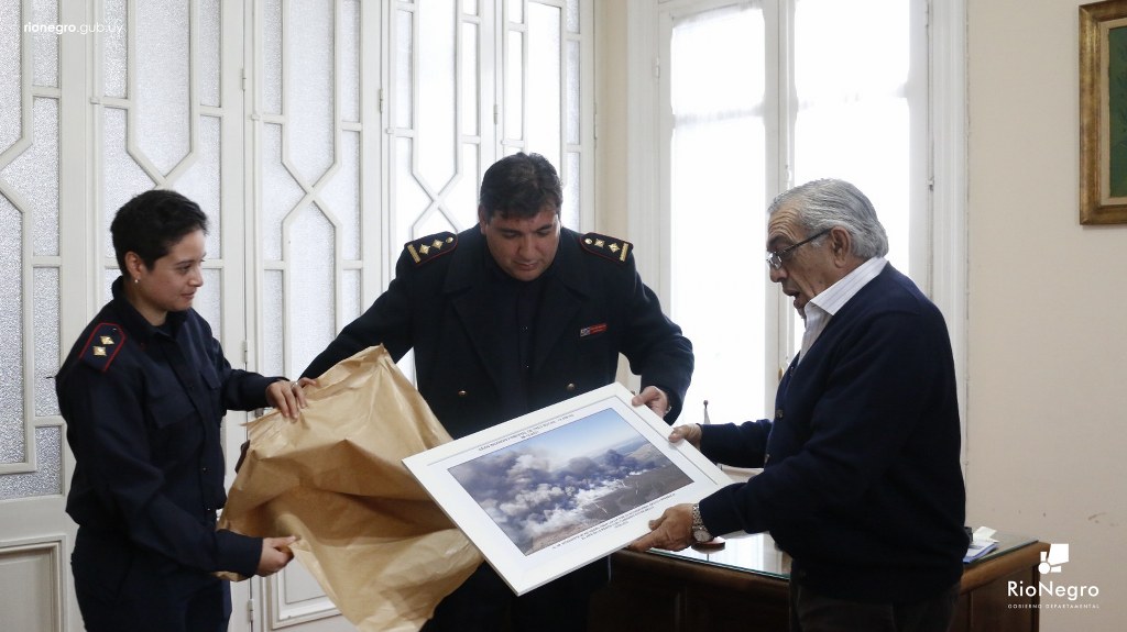 El Dr. Omar Lafluf y el Secretario General, Ing. Agr. Jorge Gallo, recibieron en Sala Ruggia, al Comisario Víctor Mello, Jefe Regional de Bomberos, con sede en la ciudad de Salto, el cual destacó el apoyo recibido del jefe comunal y sus funcionarios al combate del incendio forestal.
