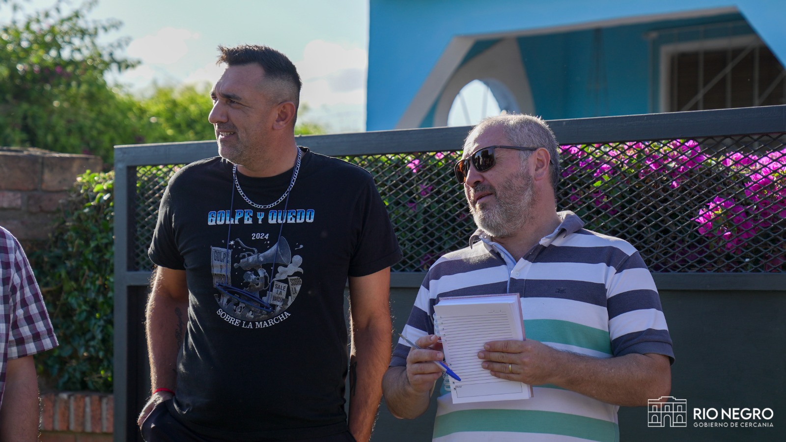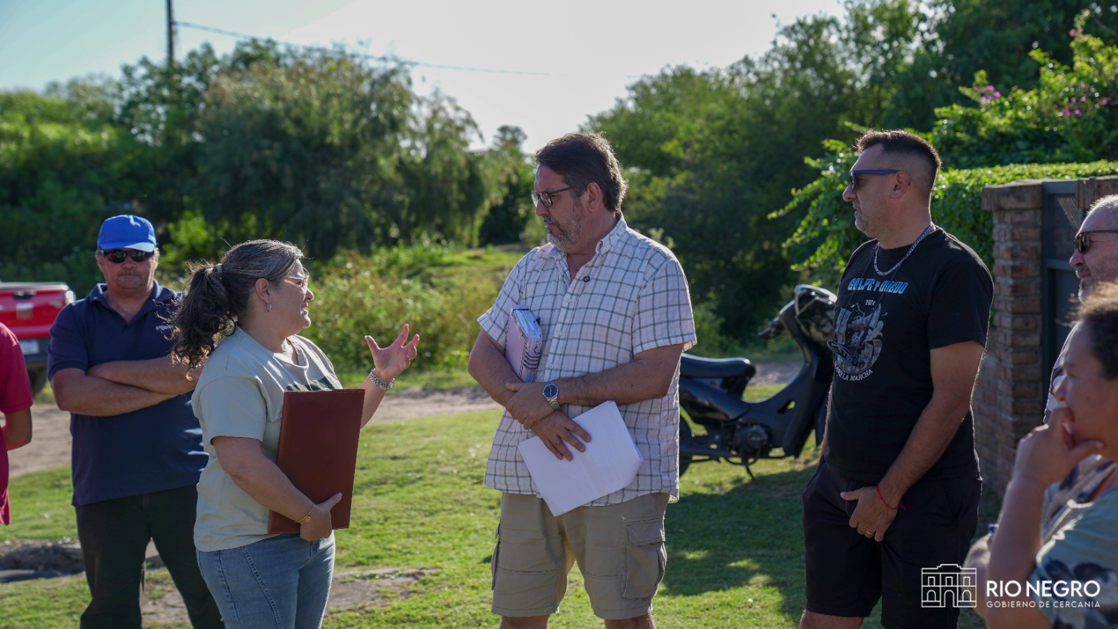 El intendente de Río Negro, Arq. Guillermo Levratto, recorrió el barrio Fripp junto a integrantes del equipo de gobierno y mantuvo un encuentro con vecinas y vecinos para abordar la necesidad de avanzar en obras de saneamiento, una demanda prioritaria de la comunidad, que dará solución a 27 familias de calle Abayubá.