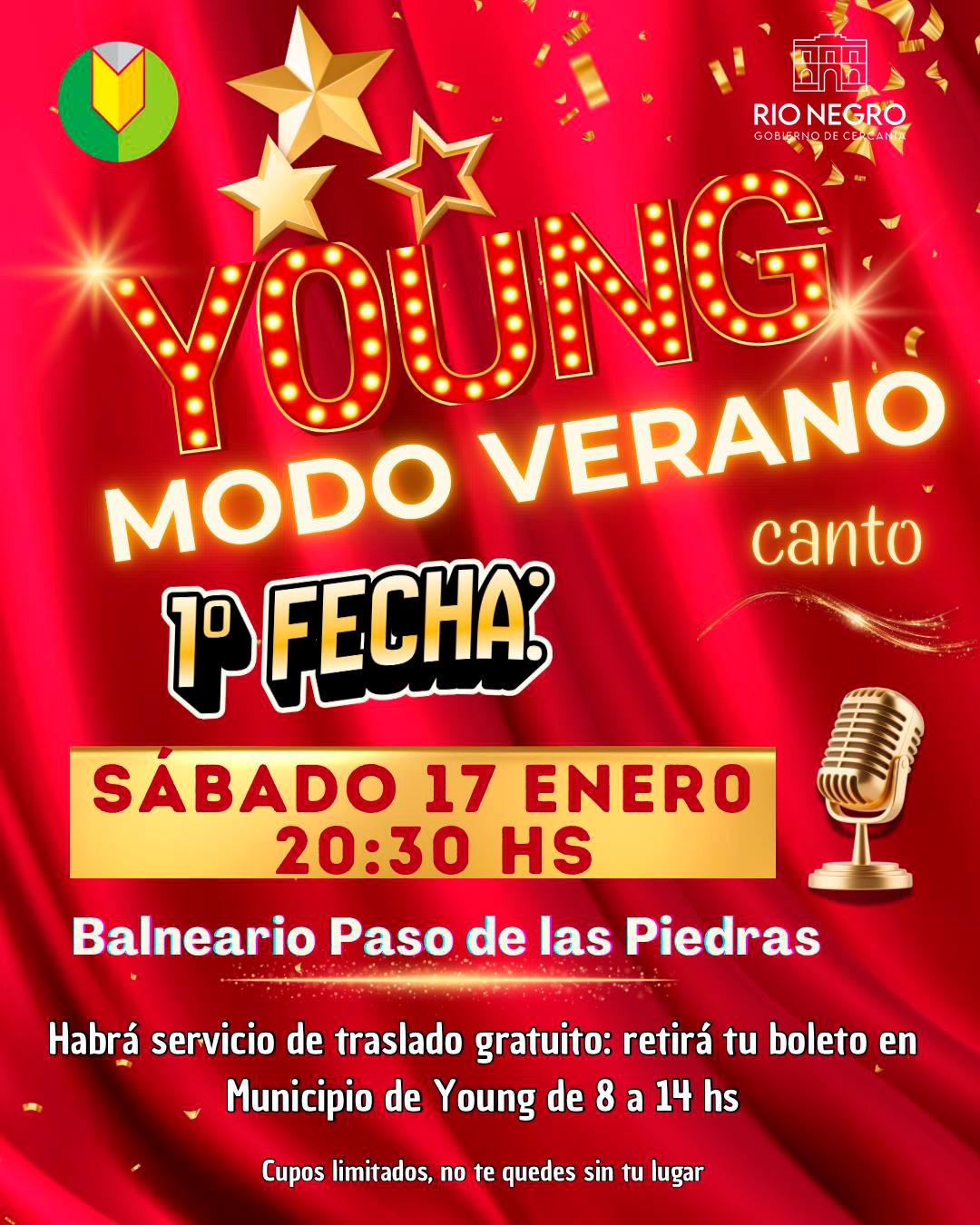 Transporte gratuito: El Municipio de Young dispuso un ómnibus para quienes deseen concurrir al Balneario Paso de las Piedras. Los boletos de ida y vuelta se retiran en Secretaría del Municipio, de 8 a 14 h, hasta agotar cupos.