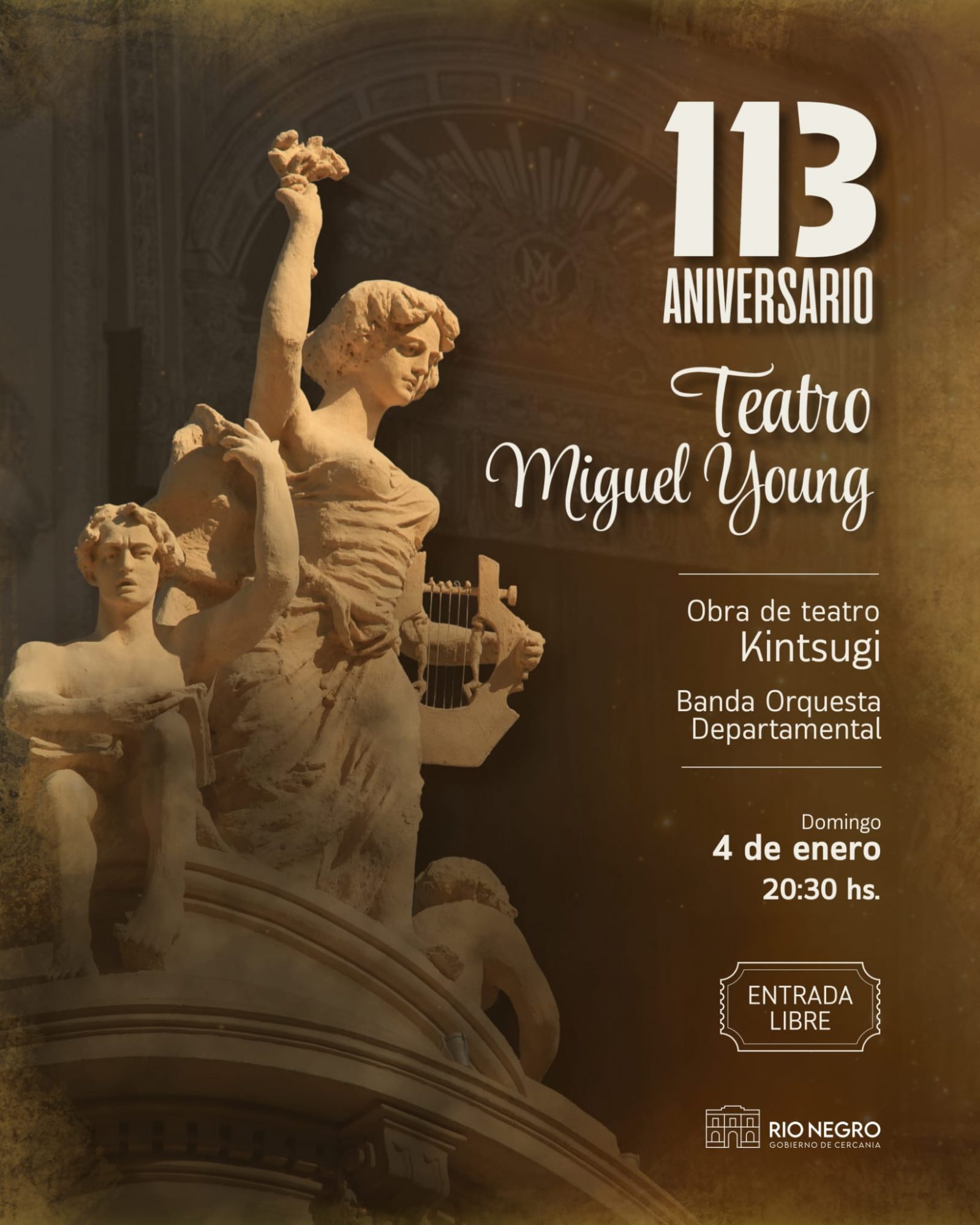 Se invita a la comunidad a participar de las actividades conmemorativas por un nuevo aniversario del Teatro Miguel Young, que se realizarán el domingo 4 de enero, a partir de las 20:30 horas.