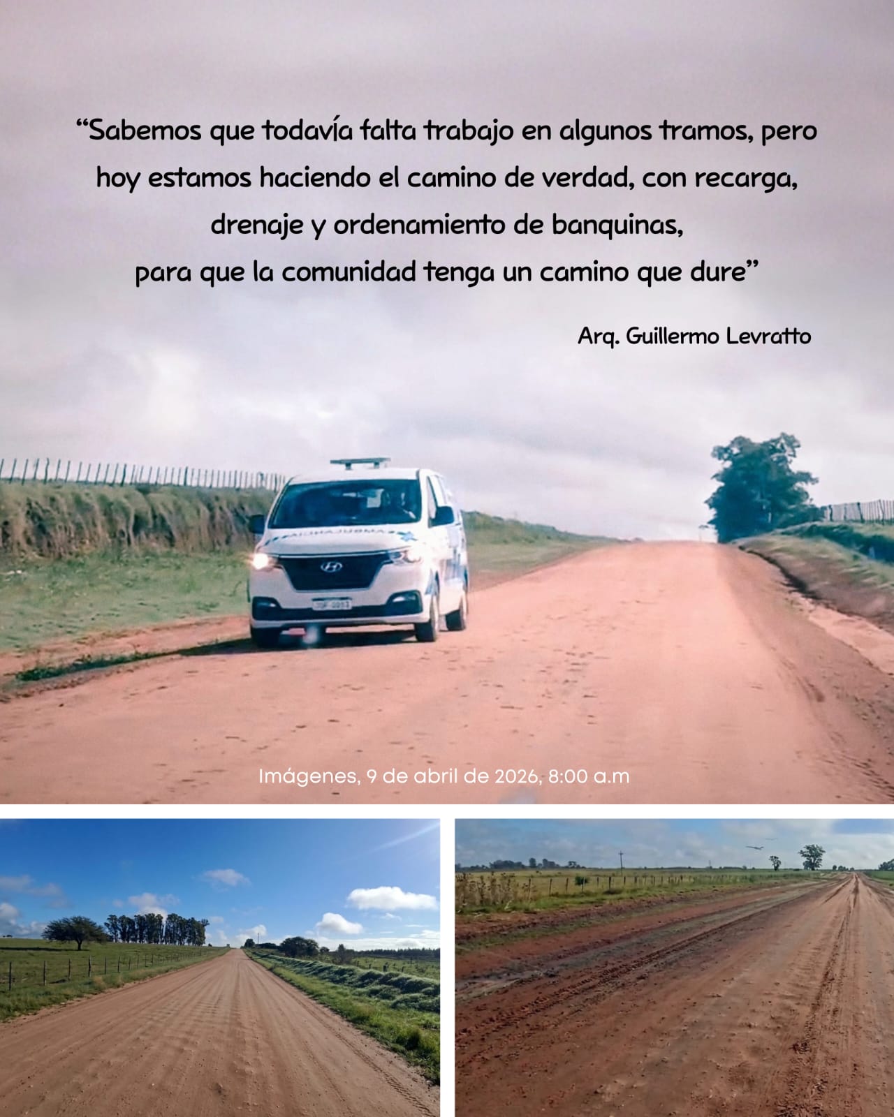 El intendente de Río Negro, Arq. Guillermo Levratto, recorrió en la mañana de hoy el camino de acceso a la localidad de Sauce y Sánchez, donde la Intendencia viene ejecutando trabajos de recuperación y mejora de la caminería rural.