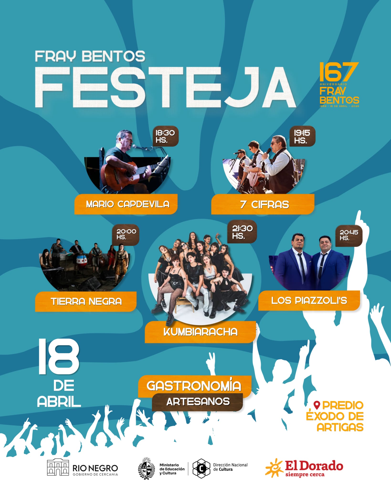 En el marco de los festejos por el 167° aniversario de Fray Bentos, el próximo 18 de abril se llevará a cabo una jornada especial con espectáculos musicales en vivo, propuestas gastronómicas y feria de artesanos.