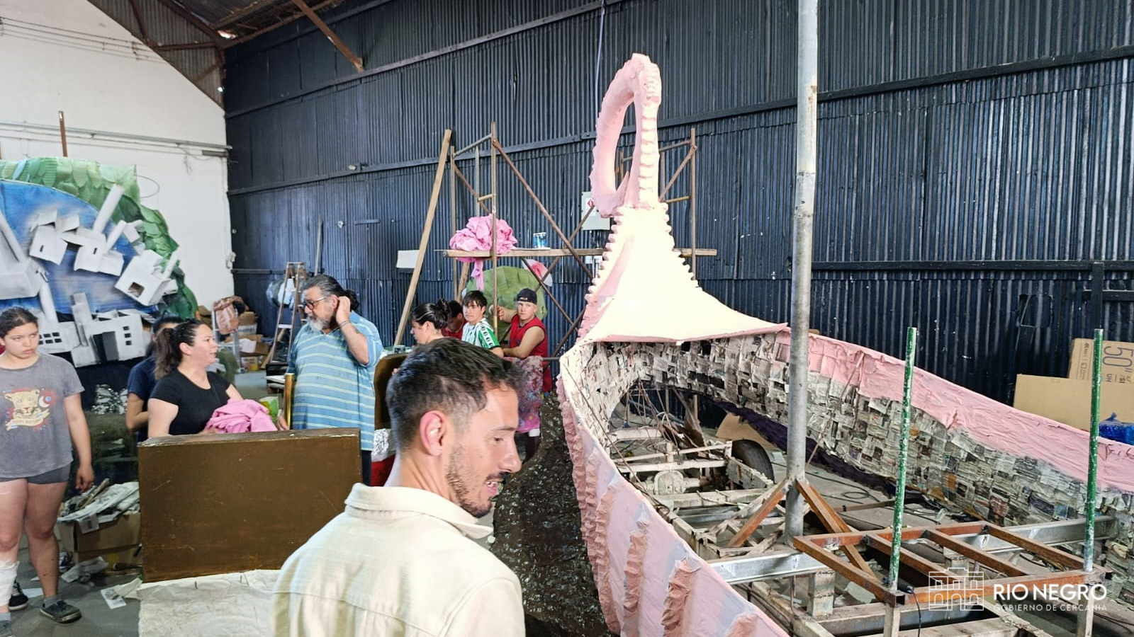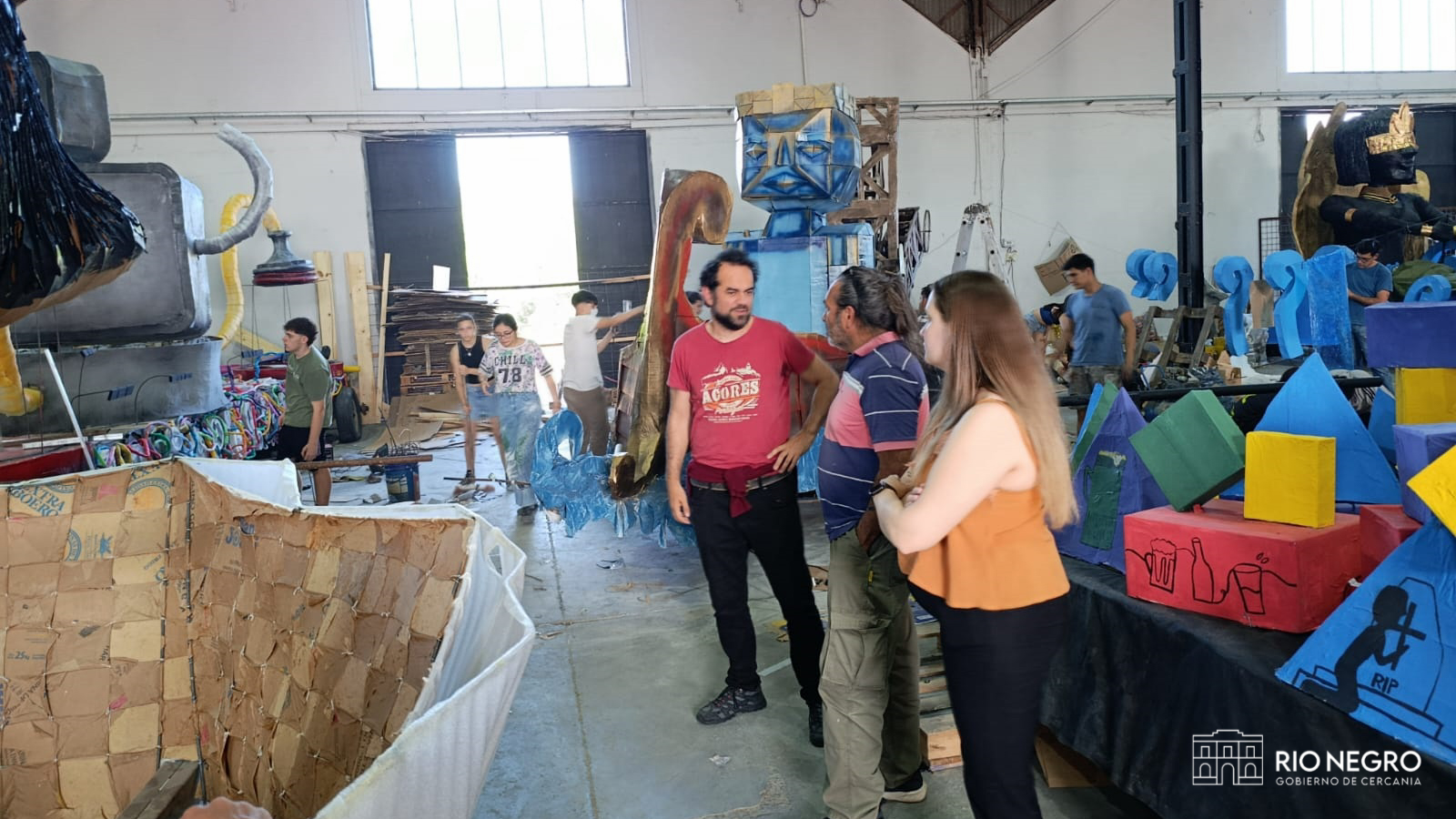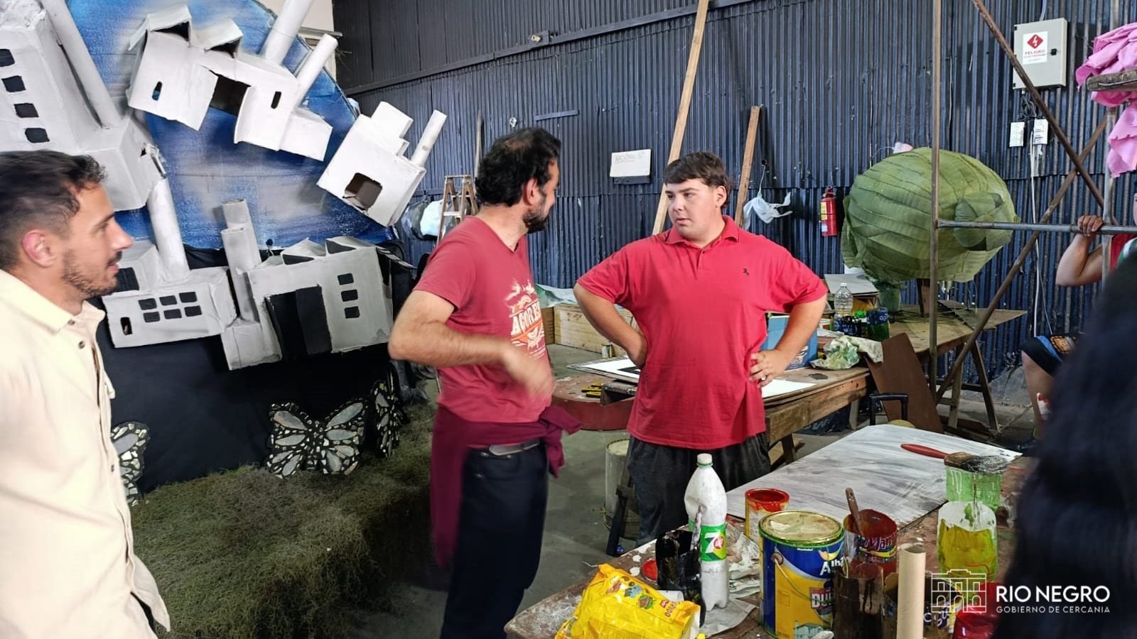 Funcionarios de la Intendencia de Río Negro visitaron los galpones donde se construyen las carrozas que desfilaron en la 66ª Fiesta Nacional de Carrozas Estudiantiles de Gualeguaychú.