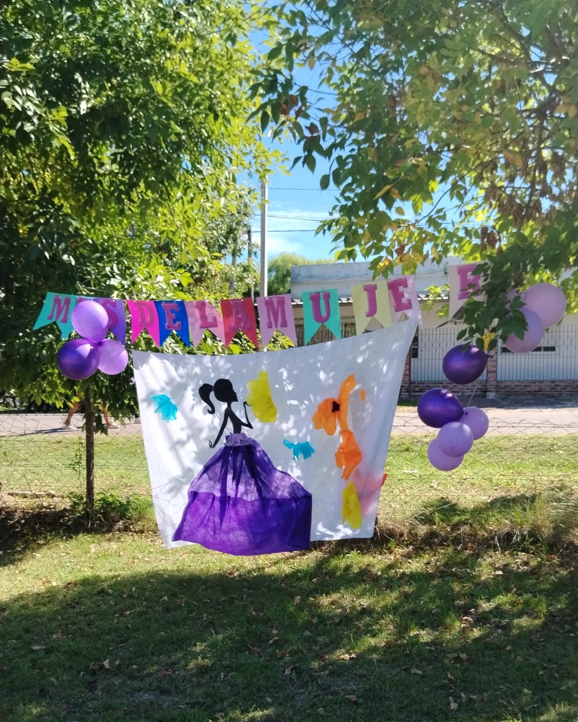 En Algorta, además de la propuesta general, se sumó un grupo local que llevó adelante la pintura de letras volumétricas en color violeta, junto a actividades recreativas, reforzando el carácter colectivo y comunitario de la jornada.