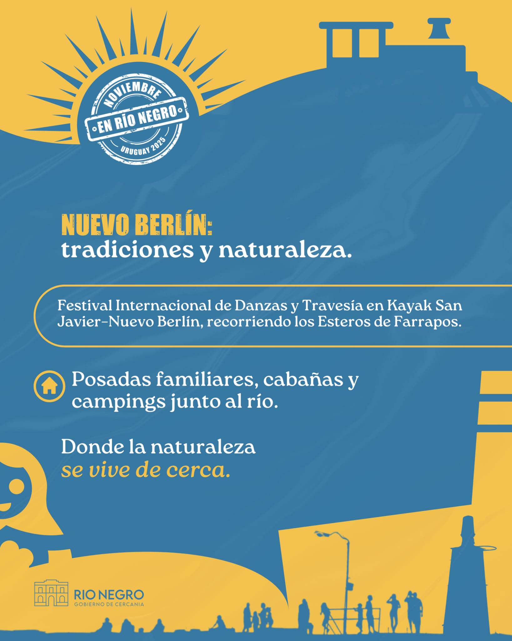 Nuevo Berlín cuenta con posadas familiares, cabañas y campings junto al río, que permiten disfrutar de un entorno natural privilegiado y de la calidez de su gente.