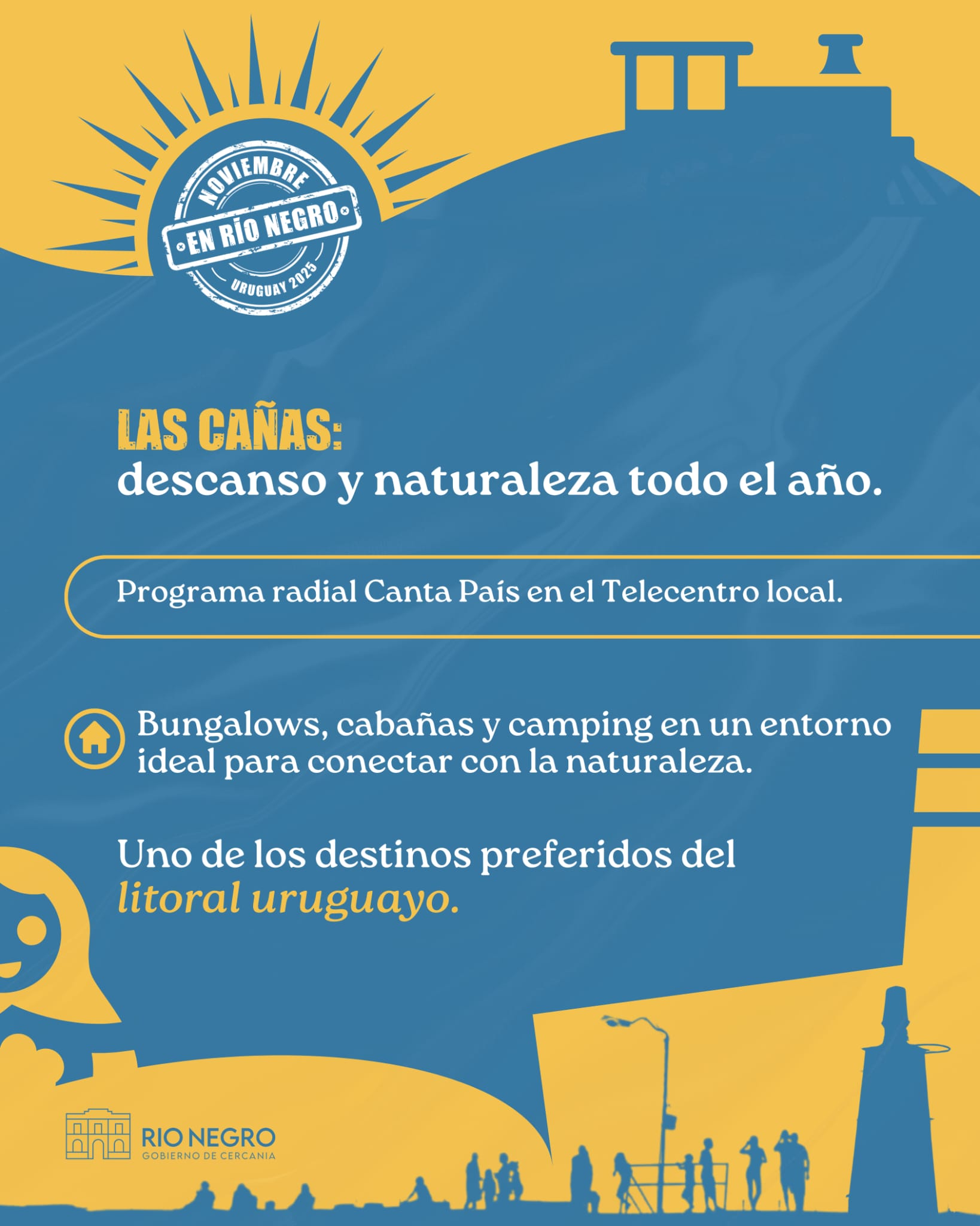 El balneario Las Cañas con sus hermosas playas ubicadas a menos de 10 km de Fray Bentos, se suma con la propuesta del programa radial “Canta País” en el Telecentro local, ofreciendo un entorno ideal combinar actividades culturales con descanso en contacto con la naturaleza y los mejores atardeceres.