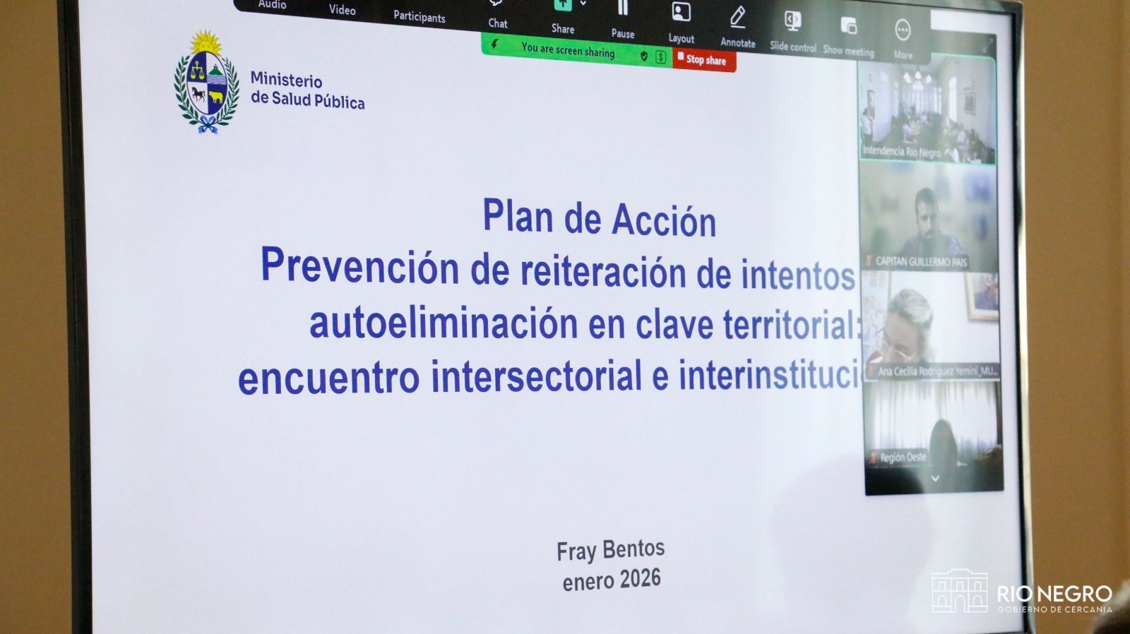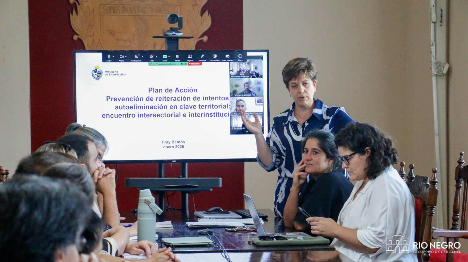 En la Sala Ruggia de la Intendencia de Río Negro se desarrolló una reunión de trabajo interinstitucional encabezada por el intendente Guillermo Levratto junto a autoridades del Ministerio de Salud Pública, con el objetivo de fortalecer el abordaje de las problemáticas vinculadas a la salud mental en el departamento.