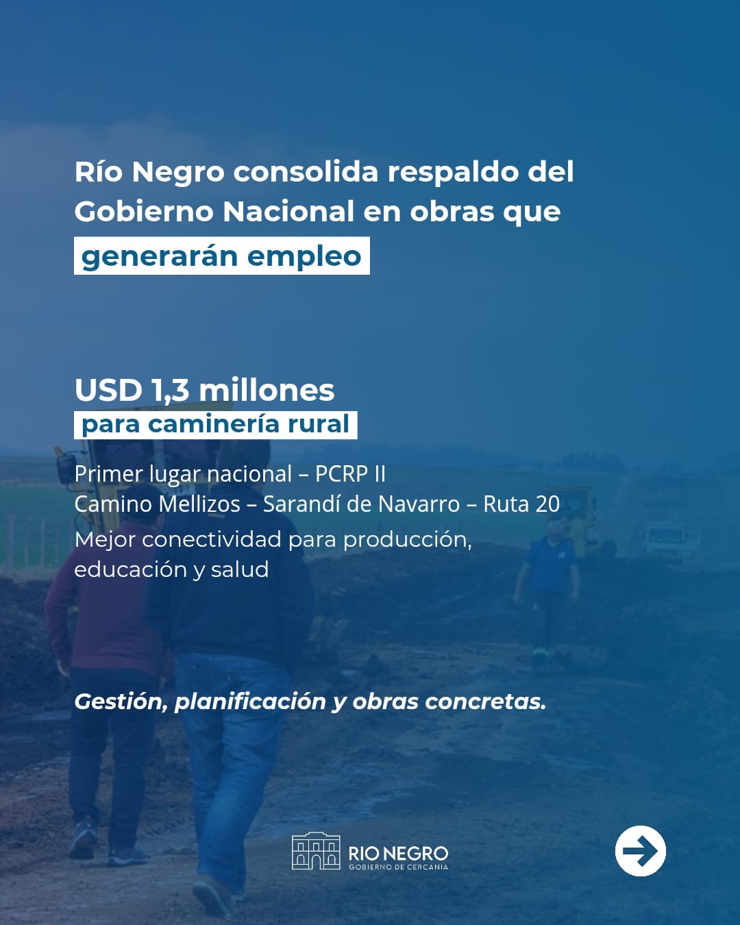 La Intendencia de Río Negro obtuvo el primer lugar a nivel nacional en el Fondo Concursable del Programa de Caminería Rural (PCRP II), accediendo a un financiamiento de USD 1,3 millones para mejorar la caminería rural del departamento.