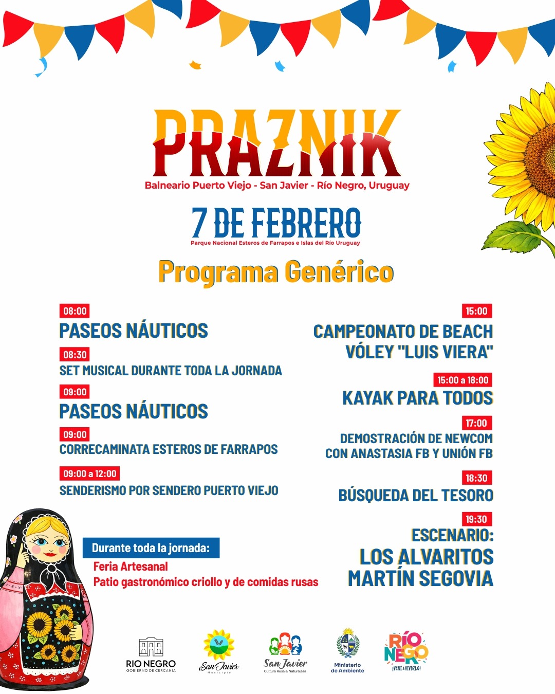 Praznik, término que en ruso significa “fiesta”, integra deporte, cultura, recreación y naturaleza en un entorno único. El evento es organizado por el Grupo Local de Turismo de San Javier, con el apoyo de la Intendencia de Río Negro, el Ministerio de Turismo, el Municipio de San Javier y el Ministerio de Ambiente, a través del Sistema Nacional de Áreas Protegidas.