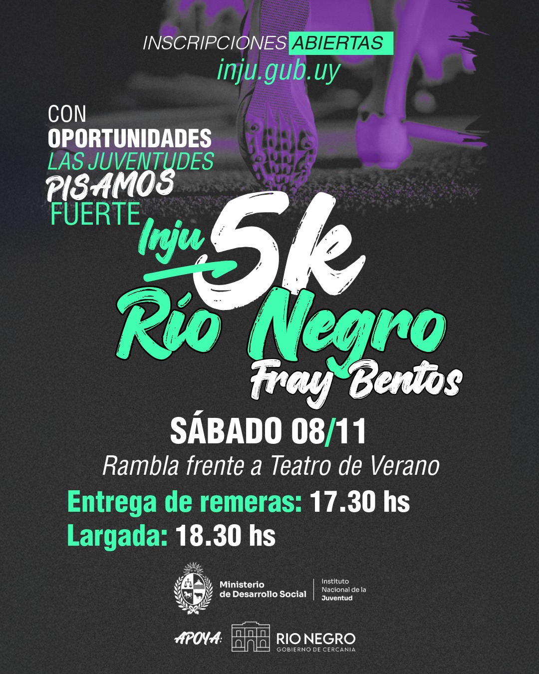 El próximo sábado 8 de noviembre se llevará a cabo en Fray Bentos la 5K del INJU (Instituto Nacional de la Juventud), bajo el lema “Con oportunidades, las juventudes pisamos fuerte”.