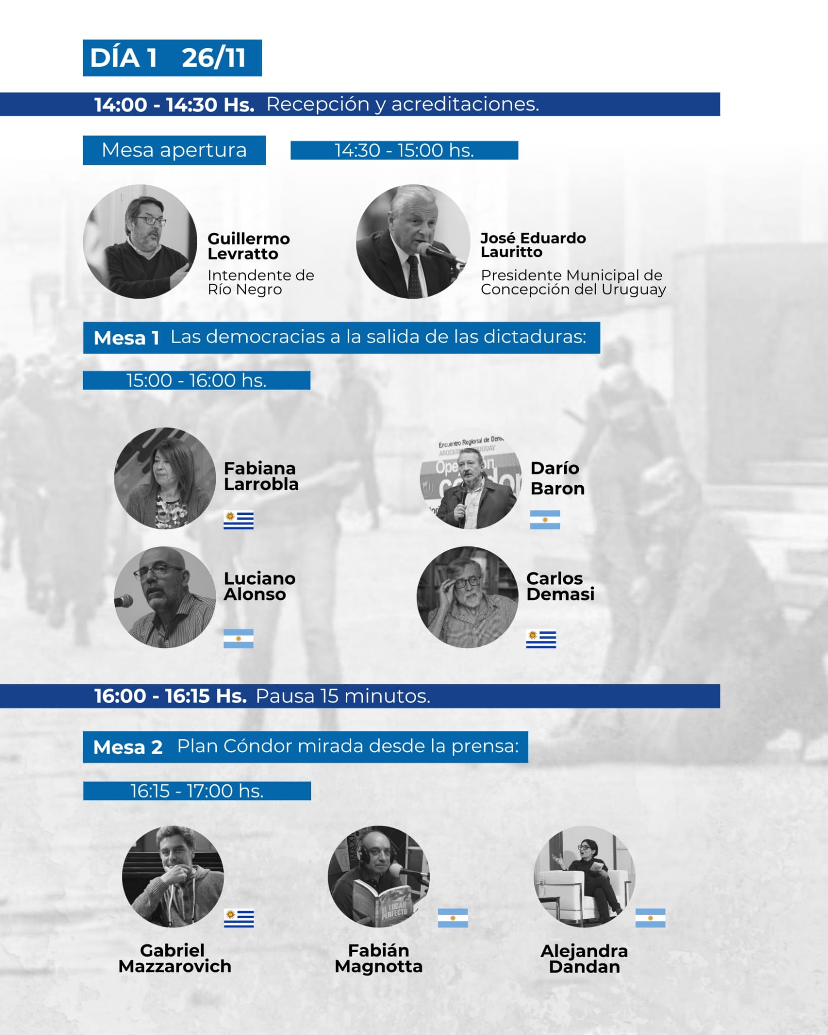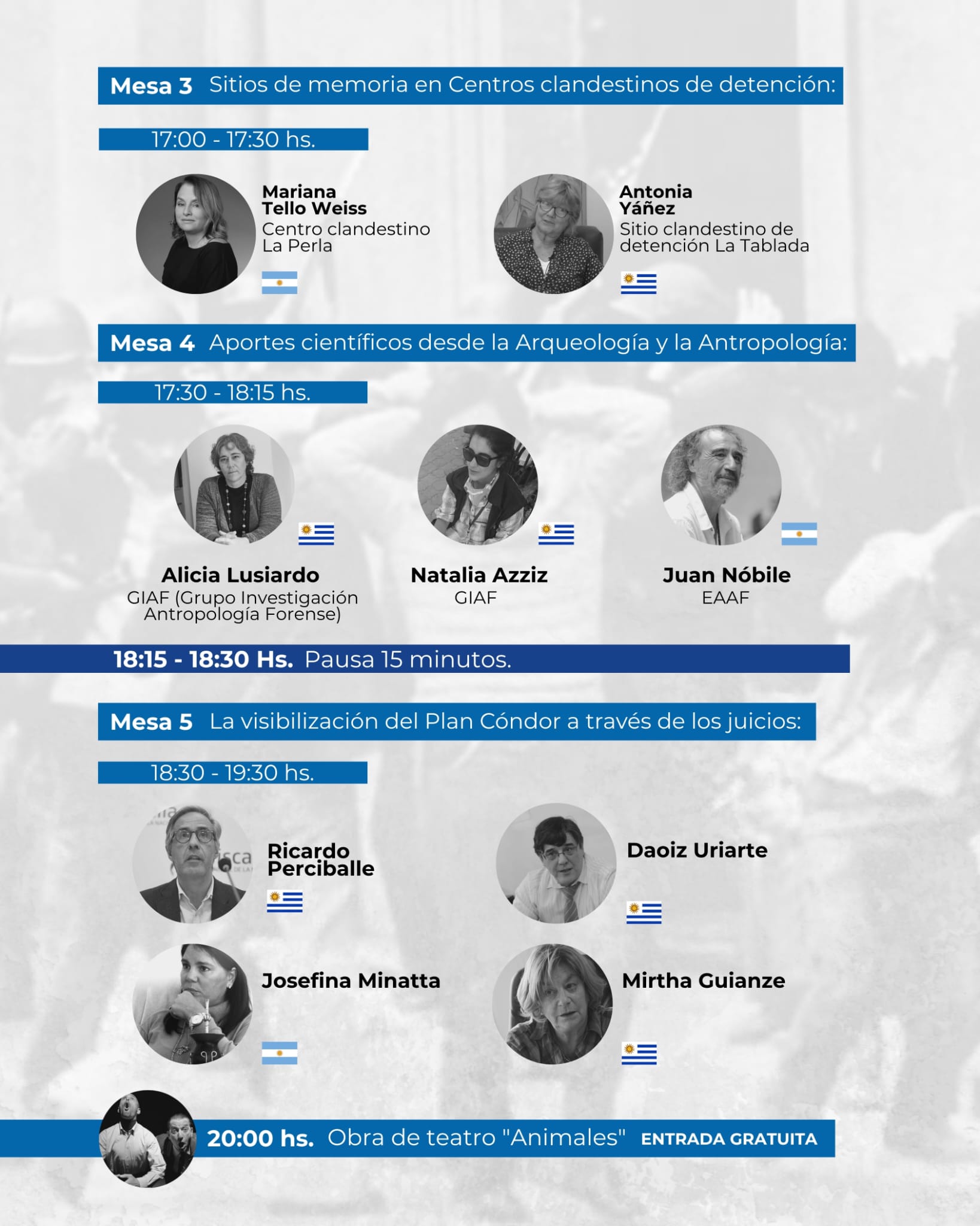 Durante ambos días, más de 20 expositores de ambos países desarrollarán mesas temáticas con la participación de comunicadores, investigadores, técnicos, fiscales, profesionales y testigos, abordando diversos aspectos vinculados al pasado reciente y a los desafíos actuales de nuestras democracias.