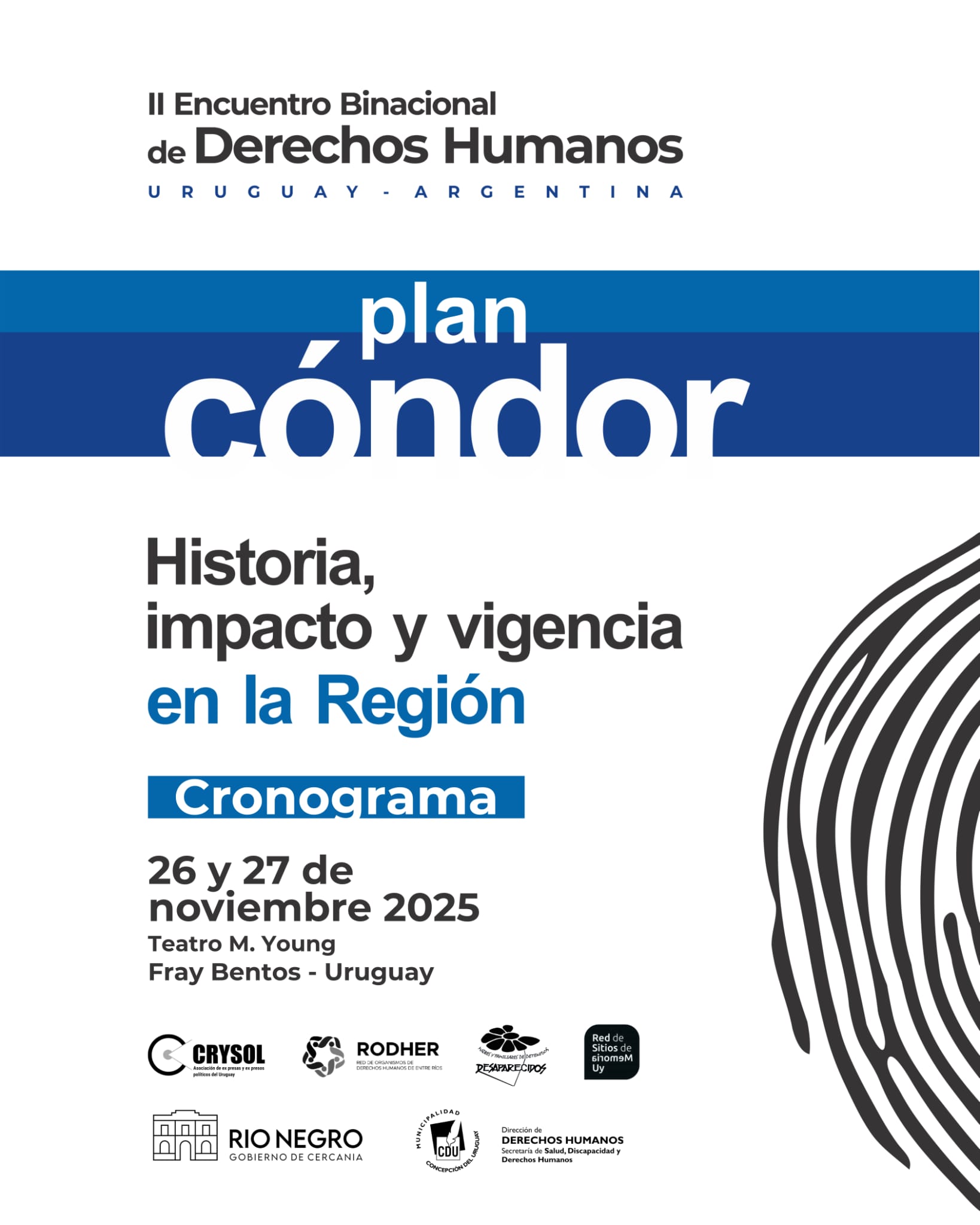 La Intendencia de Río Negro y la Municipalidad de Concepción del Uruguay invitan a participar del Segundo Encuentro Binacional de Derechos Humanos, dos jornadas de reflexión, memoria y compromiso compartido entre Uruguay y Argentina.