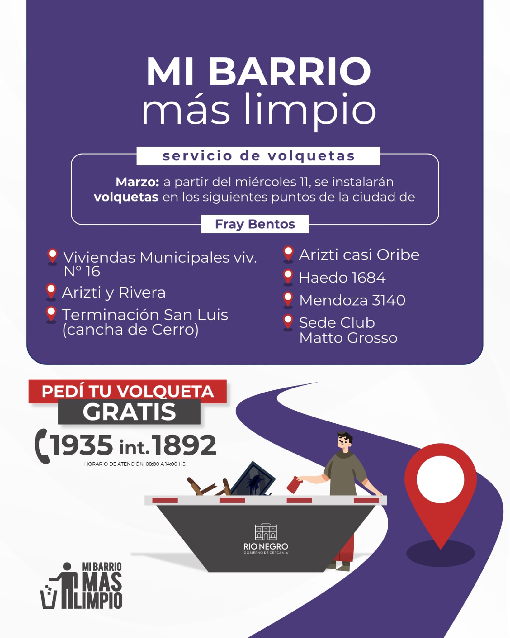 Para facilitar su uso, en la página web de la Intendencia los vecinos pueden consultar diariamente la ubicación de las volquetas, con información actualizada sobre los puntos donde se encuentran instaladas en la ciudad: aquí