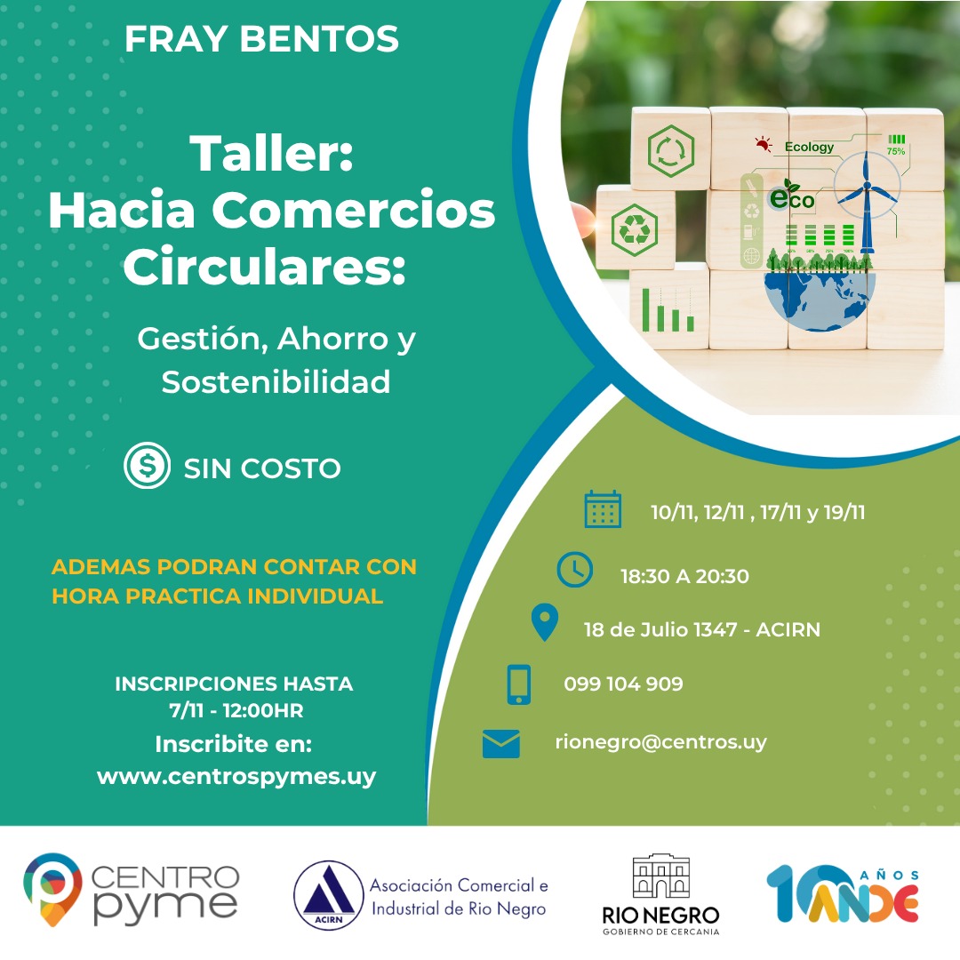 Con el objetivo de promover prácticas sostenibles y responsables en el sector comercial, la Asociación Comercial e Industrial de Río Negro (ACIRN) llevará adelante el taller “Hacia Comercios Circulares: Gestión, Ahorro y Sostenibilidad”, con el apoyo de Centro Pyme, ANDE y la Intendencia de Río Negro.